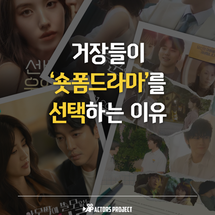 안녕하세요 엑터스 프로젝트 연기학원입니다! 오늘은 26년 업계리포트, 거장들이 선택한 숏폼드라마에 관한 소식을 가지고 왔습니다. 2030년 38조 원 규모 전망, 숏폼은 더 이상 '스낵 콘텐츠'가 아닙니다. 최근 콘텐츠 시장은 1-3분내외 숏드라마에 주목하고 있습니다. 제작비가 낮고, 몰입도가 높은 숏폼은 이미 글로벌 주류가 되었습니다. 단순한 킬링타임용 콘텐츠를 넘어, 이제 숏폼 드라마는 배우가 반드시 공략해야 할 새로운 예술의 표준이자 기회의 장이 되었습니다. 급변하는 매체 환경 속에서 신인 배우는 어떤 전략을 취해야 할까요? 엑터스프로젝트가 숏폼 시대의 생존 전략을 분석합니다. 숏폼 전성시대, 배우의 필....... <img src="https://blogthumb.pstatic.net/MjAyNjAyMjBfMTc2/MDAxNzcxNTczNjMxODI4.GSN1YaNPFk73EL57yDfEU56RMExA733JqlapG-S5UUkg.1fiEd8nmDvYhU1068rYr55k7yFQuefOfantOErjN4Esg.PNG/KakaoTalk_20260220_134500352.png?type=s3" />
