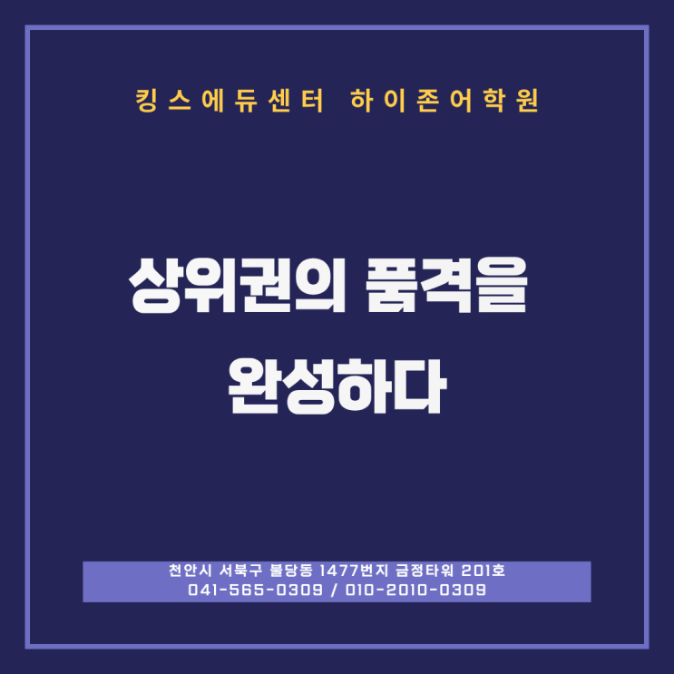 안녕하세요. 천안 최초, 영국 왕실 교육 프로그램을 도입하여 아이들의 지성과 인성을 아우르는 하이엔드 교육의 시작, 신불당동고등영어 및 융합 교육의 중심 킹스에듀센터 하이존어학원입니다. 불당동과 신불당동의 학부모님들은 교육열이 높기로 유명하지만, 그만큼 고민도 깊습니다. "영어 단어만 달달 외우는 주입식 교육이 맞을까?" "성적도 중요하지만, 아이의 정서와 창의력은 어떻게 키우지?" 이제는 단순히 문제만 잘 푸는 아이가 아니라, 넓은 시야와 품격을 갖춘 글로벌 리더가 주목받는 시대입니다. 오늘은 교과 성적은 기본이고, 쿠킹, 미술, 사고력 수학 등 다양한 경험을 통해 진짜 실력을 만드는 특별한 교....... <img src="https://blogthumb.pstatic.net/MjAyNTEyMjJfMjcg/MDAxNzY2MzY1MzEwMjIz.6o3ZHLMuczEC2NrCDFLmmXzXfhX0OeaGnk0qlV_lC0Mg.YwLIIBfht85gZVZ9v6IZH6ItpdWLyikqg8FNyjIWIQAg.PNG/18-%C5%B7%BD%BA%BF%A1%B5%E0%BC%BE%C5%CD_%C7%CF%C0%CC%C1%B8%BE%EE%C7%D0%BF%F8.png?type=s3" />