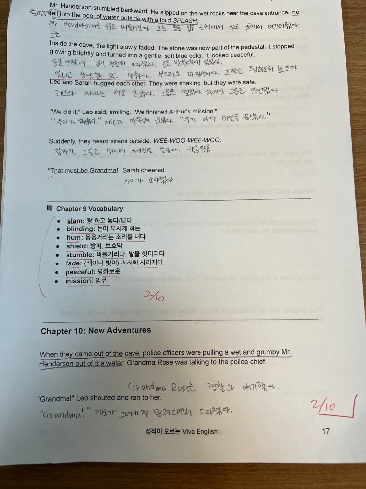 안녕하세요! 형곡동에서 학생들의 영어 자신감을 책임지는 비바영수학원입니다. 원장으로서, 그리고 아이들을 가르치는 강사로서 매일 고민합니다. '어떻게 하면 아이들이 영어를 더 재미있게, 그리고 효과적으로 배울 수 있을까?' 오늘은 그 고민의 결과물인 새로운 자체 제작 교재 소식과, 요즘 시대에 진짜 영어 실력을 키우는 핵심에 대한 이야기를 나눠보려 합니다. 원장이 직접 만든, 세상에 하나뿐인 '모험 소설' 교재 우리 중학생 친구들이 기존에 공부하던 영어 소설 교재를 드디어 완북했습니다! (박수 ) 성취감을 느끼는 것도 잠시, 아이들의 실력 향상을 위해 곧바로 다음 단계의 교재가 필요했죠....... <img src="https://blogthumb.pstatic.net/MjAyNjAyMTJfMTkw/MDAxNzcwODg0MTk3NzAw.uH-xmdOoyCwCjCbrqG5nD_sejhfzf-1hX3cqkitS9wEg.bUD_C-xGQWk1mzBDs0AM5miQSU0DIXUkBhOtZZQP--8g.JPEG/IMG_9720.jpg?type=s3" />
