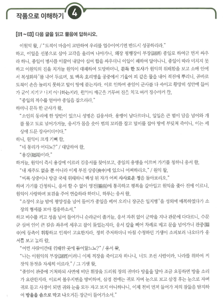 2027 수능특강_작자 미상, <임진록> ■ 작자 미상, <임진록> 해제 이 작품은 조선 시대 임진왜란을 배경으로 조선의 정치 상황과 전쟁의 경과를 통해 일반 민중들과 이름난 전쟁 영웅들의 활약상을 보여 주는 역사 소설이다. 지문에는 여러 이본 중 경판본을 수록하였다. 붕당 정치로 인한 어지러운 정치상, 평수길의 조선 정벌 준비와 조선 침범, 이순신의 승리, 명나라 구원병의 참전, 그리고 사명당 등 여러 인물의 활약상을 형상화하였다. 역사적인 사실에 기반하면서도 설화적 상상력을 가미하여 흥미를 더하는 한편 왜적에 대한 적개심을 고취하였다. <임진록> 전체가 단일한 서사 구조로 응집되어 있지 않고 인물이나 사....... <img src="https://blogthumb.pstatic.net/MjAyNjAyMTdfMjcw/MDAxNzcxMzE4MzY4MTUw.mpgSWntXoBr-req_BNEBDdyB3uhQMEqkdpG2cYtmV3Eg.sXOv7y2M6AxDde8ztHJxLJL-9-pFz1YlSI25q7G_3iAg.PNG/image.png?type=s3" />