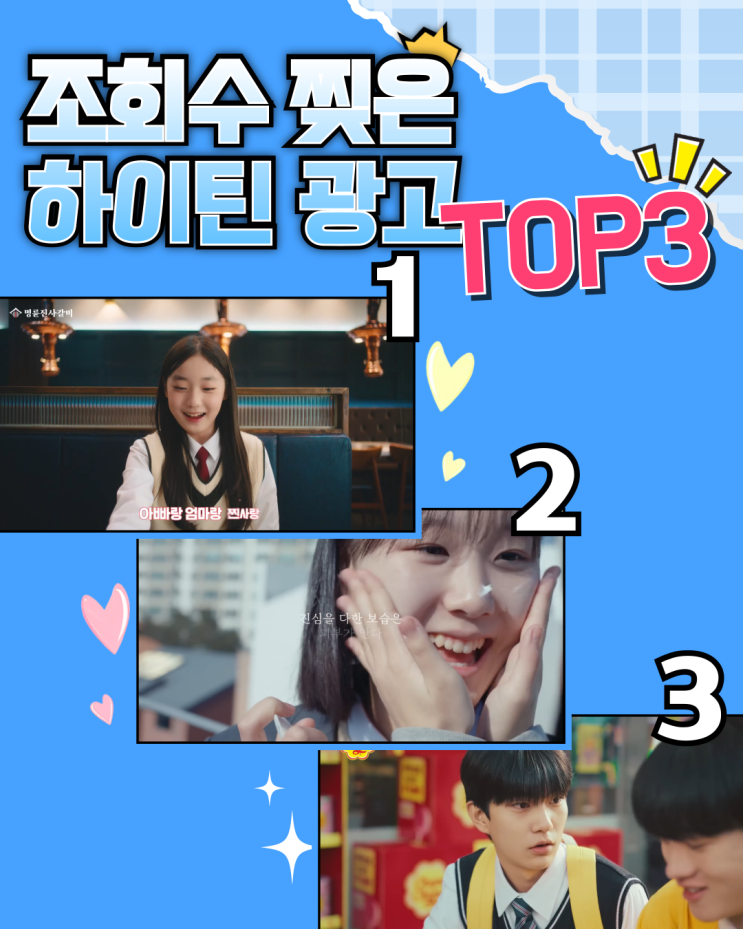안녕하세요. 퍼스트액터스 입니다. 2026년에도 다양한 광고에 퍼스트액터스 청소년광고모델들이 캐스팅 되었습니다 :D 오늘은 퍼스트액터스가 광고모델 캐스팅한 2026년도 온에어된 많은 광고들 중 조회수가 잘 나온 광고Top3를 소개합니다! 조회수 찢은 하이틴 광고 TOP3 2026년 온에어된 광고중 조회수가 가장 높게 나온 top3를 소개합니다. 어떤 청소년광고모델들과 함께했는지 함께 확인해보시죠! 1. 명륜진사갈비 조회수 273만회를 넘긴 명륜진사갈비 광고✨ 퍼스트가 캐스팅한 청소년광고모델 신연우입니다! 숯불돼지갈비부터 다양한 고기가 있는 명륜진사갈비 부모님과 함께 맛있게 먹는 연우❤️ 춤추는 귀여운 모습까지 볼수 있는 광....... <img src="https://blogthumb.pstatic.net/MjAyNjAyMDZfNzIg/MDAxNzcwMzU3NTIzMzk1.lVvkRhtj1TpvNXJqDUeVNzSu12nd8NMXP9c7JHY2LPQg.p4Ds5vg-HZOZrFTreK7K13GIMS8VxAiFN8x_vyTzGYUg.PNG/002.png?type=s3" />