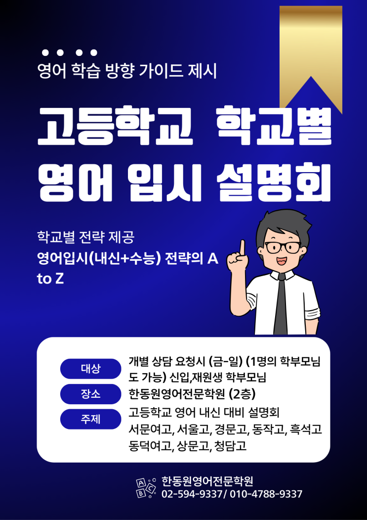 #방배#동작#고등학교영어학원#고등부내신대비 학교별 설명회는 추후에 다시 알려드리도록 하겠습니다 개인적인 상담과 학교별로 궁금하신 점들은 직접 연락을 주시면(01047889337) 날짜를 잡아서 간담회 형식의 설명회를 진행하도록 하겠습니다 감사합니다 <img src="https://blogthumb.pstatic.net/MjAyNjAyMTFfMjQz/MDAxNzcwNzc2OTI5Mjgz.K9qACpDzzj_80aPO3MC6386Fyh6VbY48VYT22TwU5a8g.x2QV7erNbWu__knsoHN9ajFIfnDXsrhltmegjvIA0msg.PNG/%C0%D4%BD%C3%BC%B3%B8%ED.png?type=s3" />