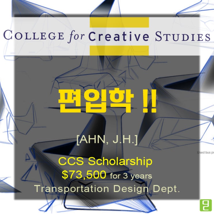 College for Creative Studies 2학년 편입 성공 사례 미술·디자인 비전공에서 자동차디자인으로, 그리고 39학점 인정과 50% 장학금까지 받게 되었습니다. 미국 디트로이트에 위치한 College for Creative Studies(CCS)는 글로벌 자동차디자인 분야에서 뛰어난 입지를 가진 학교입니다. 자동차 디자인 학과 측면에서는 ArtCenter와 어깨를 나란히 하는 미술 대학입니다. CCS의 경우, General Motors, Ford Motor Company 등 자동차 산업의 메카인 디트로이트 주요 완성차 기업과의 산학 연계로 실무 중심 교육을 제공하는 것으로 잘 알려져 있습니다. [AHN, J.H] 2학년 편입 합격 사례는 더욱 특별합니다. 미술과 디자인 비전공 학생이 2학년 편입....... <img src="https://blogthumb.pstatic.net/MjAyNjAyMjNfMjU2/MDAxNzcxODI5Mjc0MDg0.VnsSDTOTu88f_E-2oo8YxIqMiSuMYBA44AsjgiCMDHwg.qBwKiqvB_qQo9mmtVwOzianldaq991qOMEzNrCbQSo0g.JPEG/ccs_%C6%ED%C0%D4%C7%D0_%B9%CC%BC%FA%BA%F1%C0%FC%B0%F8%C0%DA.jpg?type=s3" />