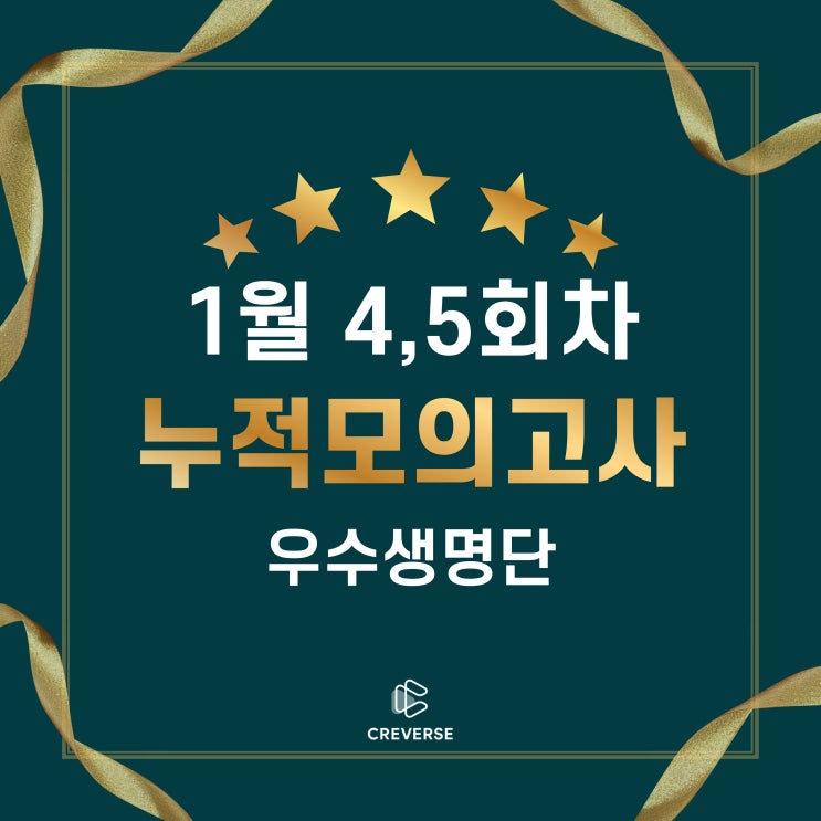 2026년 1~2월 4회차, 5회차 누적모의고사 우수생 안내드립니다. 이번주 우수생 명단입니다! 추위를 이기는건 배움의 열기! 항상 꾸준히 열심히 공부하는 우리친구들 ! 축하축하!! 시험보느라 고생한 모두에게 박수~! 짝짝짝 5회차에는 공수1과정을 공부중인 정★준 친구가 100점 만점을 받았습니다! 또한, 성적우수자가 엄청 많이 나왔네요! 4회차 5회차 모두 고생하셨습니다! 누적모의고사?? 현재 배우고 있는 과정의 직전범위까지의 기본 ~ 심화 문제를 모의고사 형식으로 점검하는 시험! ▼▼▼▼ 누적모의고사 자세히 알아보기▼▼▼▼ 우리친구들의 동기부여를 위해 매주 코인교환권 증정! 간식, 학용품, 굿즈등 여러가지 선물가득~♥ 매분....... <img src="https://blogthumb.pstatic.net/MjAyNjAyMDZfNDEg/MDAxNzcwMzU4OTEzMjc1.OndJ7M2r1Y2IV7vc0PVEZzCnLwepVj7jkDh5VKQjc74g.t4yGmNp7M6UGUSshHM_4cHMH3CXF4HwoZ2Egpzu2VH8g.JPEG/_%BA%ED_%B4%A9%C0%FB%B8%F0%C0%C7%B0%ED%BB%E7-%BF%EC%BC%F6%C7%D0%BB%FD-001_%281%29.jpg?type=s3" />