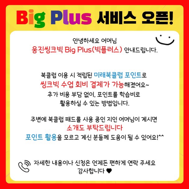 웅진북클럽 포인트로 씽크빅 수업이 가능해요??