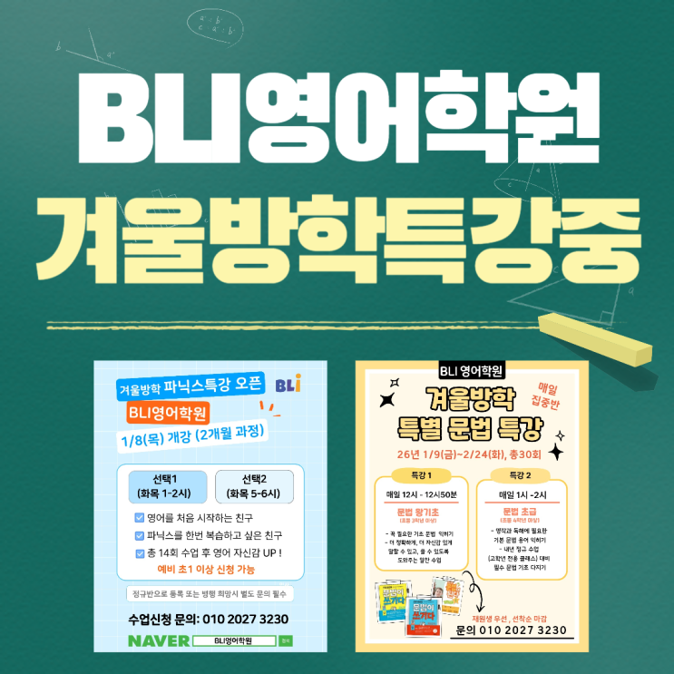 연동 파닉스/문법, 방학에 잡아야 새학기 편해집니다 (BLI영어학원 특강)