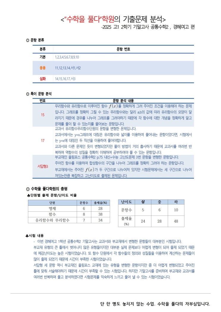 -2025 고1 2학기 기말고사 공통수학2 , 경혜여고 편