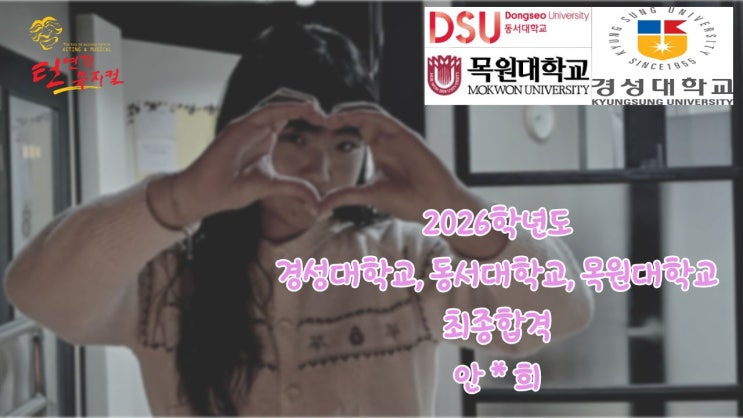 안녕하세요 여러분~ 드디어 합격 후기 영상들을 가지고 왔어요!! 경성대, 동서대, 목원대 뮤지컬과 수시 합격 우리 쏠을 영상 보실께요ㅎㅎ 학교가서도 잘 할 수 있도록 응원 많이 해주세요!! 문의 : 051 363 8893 인스타그램 : @turn_acting_musical 유튜브 : https://www.youtube.com/@turnacting2021 카카오톡 오픈 채팅 : https://open.kakao.com/o/sRgpz9md <img src="https://blogthumb.pstatic.net/MjAyNjAxMjdfMzkg/MDAxNzY5NTE2NTAzNjk2.I6Xpv0VpOQnfY9DxvJfRmzdpcljwXai6Xm_Mnqtt9bAg.02RHmKmw0kFggsrgxrKi5Pds14q6WjpP98TcfZfkApQg.JPEG/3.jpg?type=s3" />