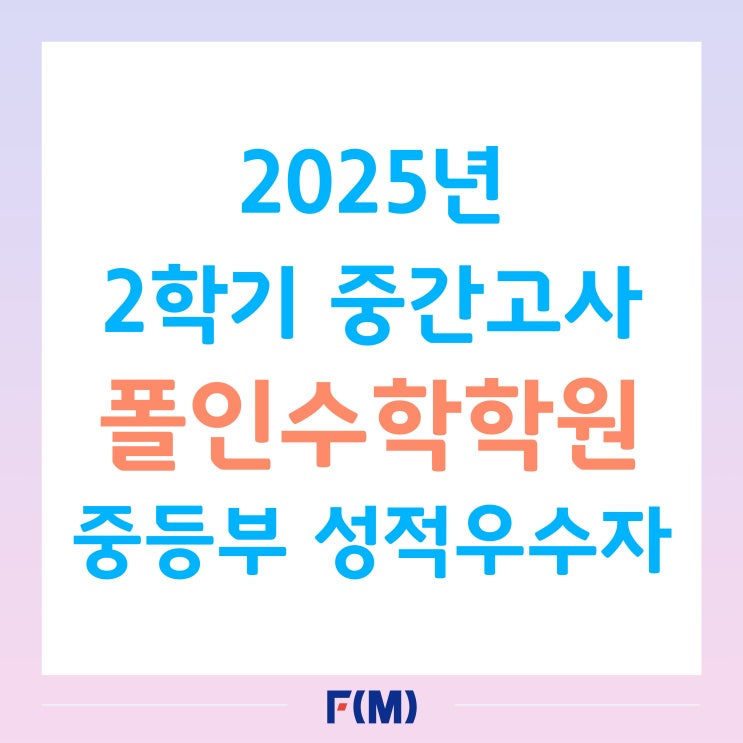 [명지수학학원] 폴인수학학원 성적우수자 / 2025년 2학기 중간고사 중등부 성적우수자