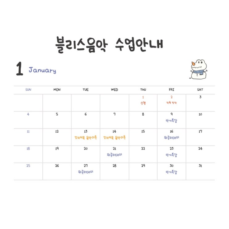 2026년 1월 수업안내