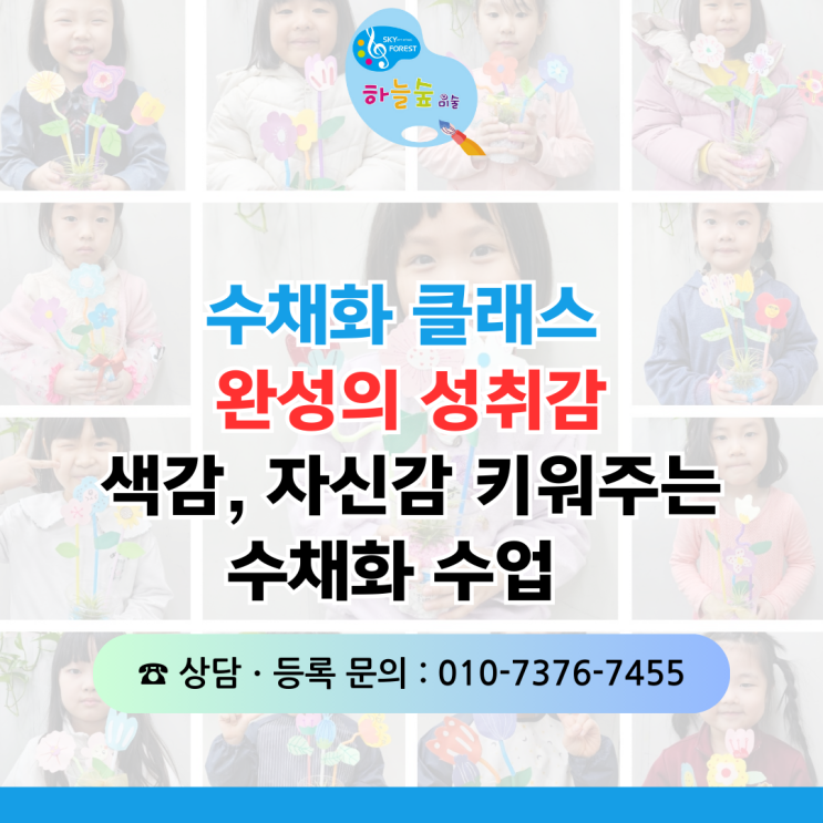복현동 복현초 | 아이파크 |자이 이편한 세상 인근 미술학원 수채화 수업 리틀 감성 예술가들이 꿈을 키우는 행복한 감성 놀이터 하늘숲 미술학원 북구 복현동에서 아이들의 예술 감성과 성취감을 키워드리는 친절한 하늘숲서쌤입니다 오늘은 저희학원에서 진행되는 수채화 완성 과정 수업을 영상으로 담아, 블로그로 공유 해 드릴게요. 수채화 수업은 단순히 “물감을 칠하는 시간”이 아니라, 색이 번지고, 붓이 지나간 자리에 빛이 남고, 스스로 작품을 완성하며 자신감이 자라나는 과정이에요. 우리 아이가 붓을 잡고 집중하는 40~60분 동안, 마음도 실력도 함께 채워지는 시간이 된답니다. 수채화 완성 과정 4단계 커리큘럼 저희 복현....... <img src="https://blogthumb.pstatic.net/MjAyNjAxMTJfMjkx/MDAxNzY4MTk4MzYzNTI3.aDsdVwJqOxCHQF4CeSBq8Cskrapf2S5IJrVEmEviAaUg.uYBUfNPnKGO905sDmof0Sx0UvPfayME5co6QvH6skxAg.PNG/%BD%E6%B3%D7%C0%CF_%BC%AD%BC%F6%BF%C1_%BF%F8%C0%E5%B4%D4%C0%C7_%BB%E7%BA%BB.png?type=s3" />