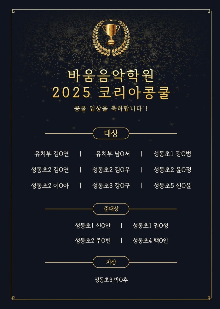 .. 코리아 콩쿨✨ 바움이들 콩쿨 입상을 축하합니다 이번 콩쿨을 계기로 한층 더 성장했을 거라 확신하고 믿어 치열한 경쟁 속에서도 즐겁게 즐기자 ᴱᴺᴶᴼᵞ ᵞᴼᵁᴿ ᴹᵁˢᴵᶜ◡̈ <img src="https://blogthumb.pstatic.net/MjAyNjAyMjBfMTg2/MDAxNzcxNTYwNjc5ODEz.1ERDrLde5pW9sQ6ZMPcRrzKd9aLeKE7hPh_KaDTfWYYg.REDFIIzJF9VRV_pf9EZ5sVOwi0hXWKA4I8P8d59VY_Mg.JPEG/IMG%A3%DF1947.JPG?type=s3" />