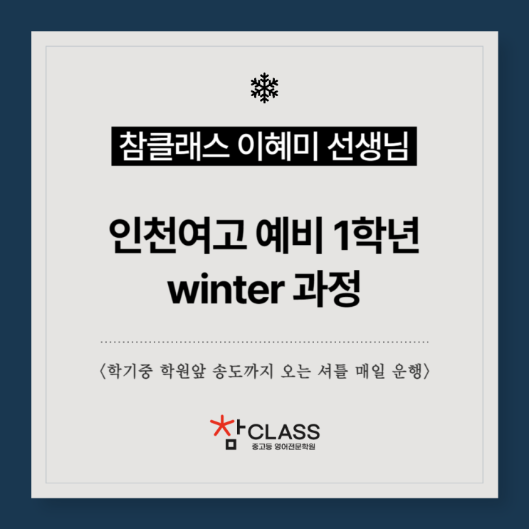 [인천여고 영어학원] 참클래스 이혜미 선생님의 인천여고 예비 1학년 winter 과정