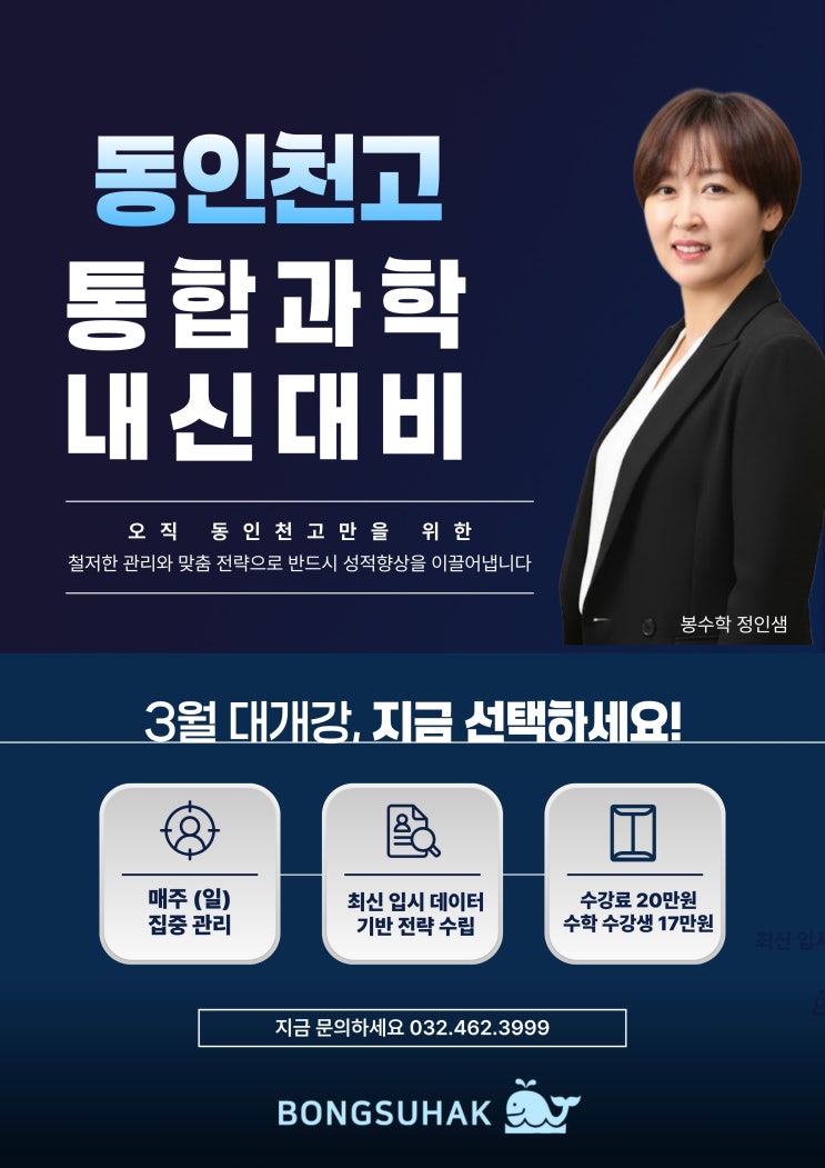 구월동 수학학원) 봉과학 동인천고 모집 3월 개강!
