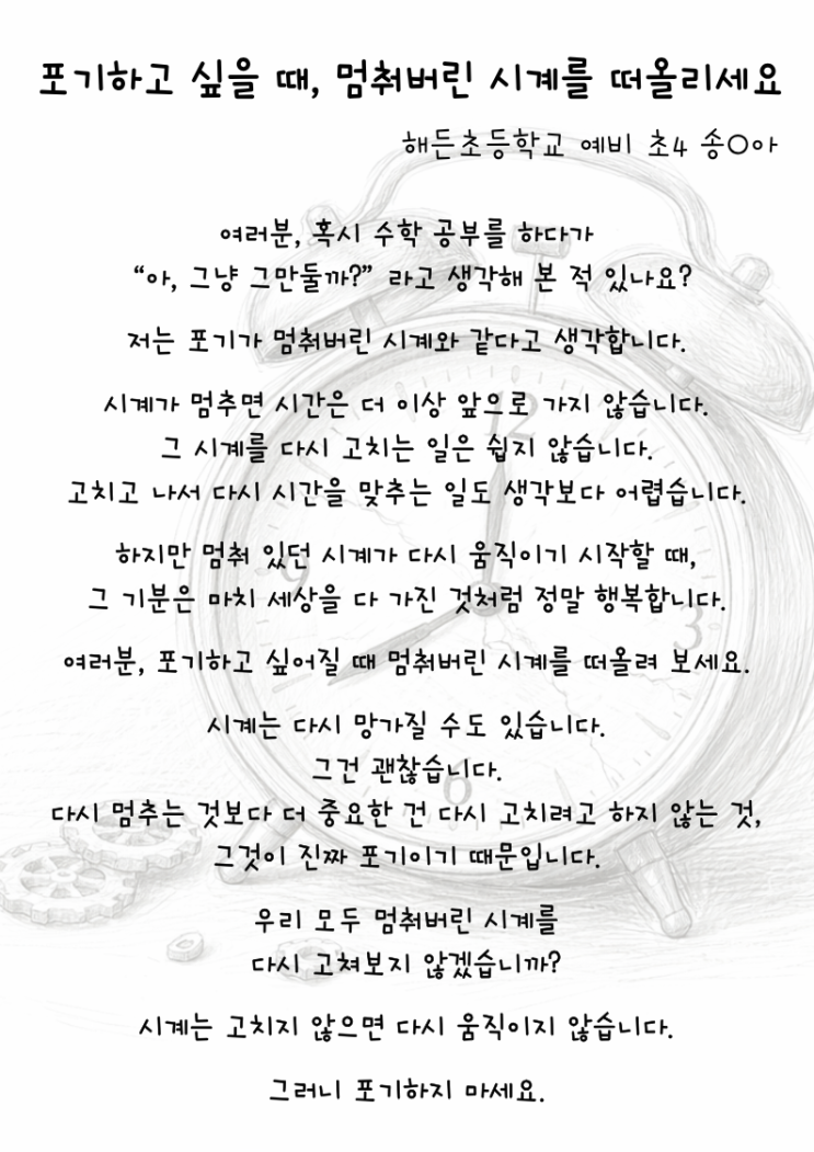 [스피치마루지 김포아라] 해든초 예비 4학년 송O아 / 논술스피치12권 연단스피치