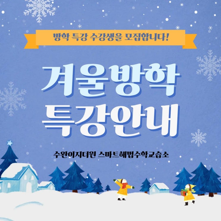 [공지사항] 겨울방학 특강 안내 수학 성장의 가장 큰 기회! 초등학생 선착순 모집