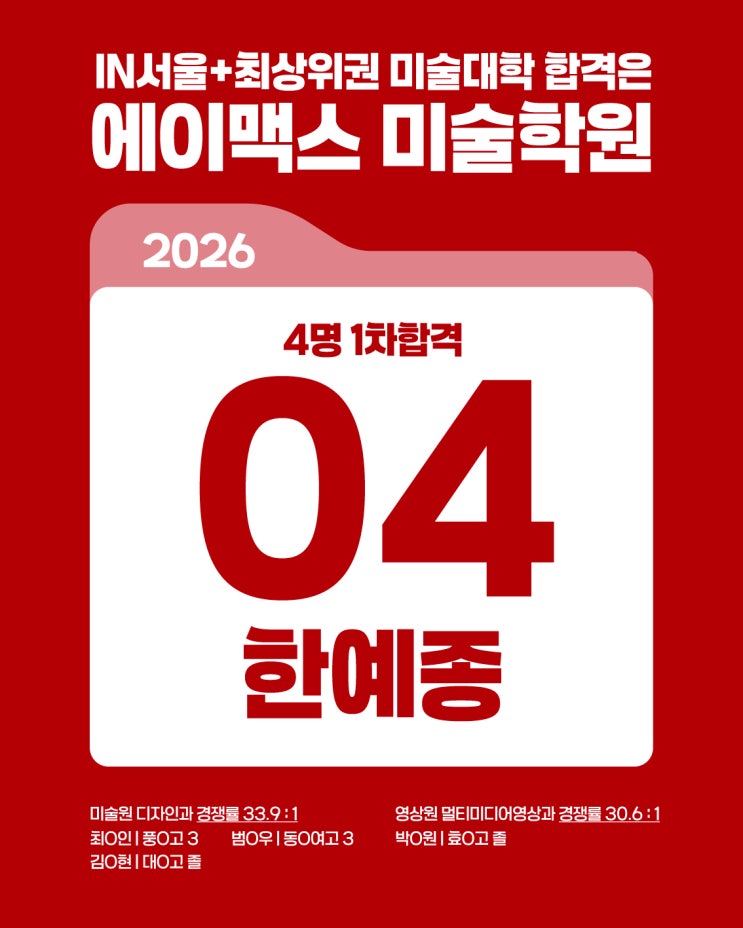 [에이맥스 미술학원] 2026학년도 한국예술종합학교 4명의 수시 1차 합격자를 공개합니다!![광주 입시미술학원]