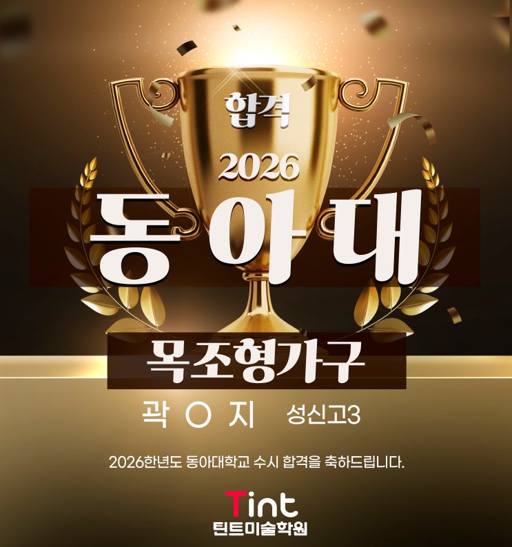 동아대학교 목조형가구디자인과 합격을 진심으로 축하합니다! Creative Future, 새로운 디자인의 시작! 치열한 입시 경쟁 속에서 동아대학교 목조형가구디자인과에 당당히 합격하였습니다! 그동안 저희 울산틴트미술학원과 함께한 노력의 결실이 맺히는 순간입니다. 틴트미술학원과 함께한 합격 소식, 그 기분 그대로! 동아대 목조형가구디자인과는 부산·울산 지역에서 탄탄한 커리큘럼과 실무 중심 교육으로 매년 높은 취업률과 실력 있는 디자이너를 배출하는 곳이죠. 그만큼 경쟁도 치열하지만, 꾸준한 연습과 성실함으로 멋지게 자신의 실력을 증명해 보였습니다. 디자인은 감각이 아니라 태도다. 저희 울산틴트미술학원과 함께한....... <img src="https://blogthumb.pstatic.net/MjAyNTEyMjNfMjY1/MDAxNzY2NDY3NzQ2OTU0.HujY-1RaLxOW66NEEZo3_cWdSo9SQfKNQtMNkPWOg7Ag.mcd9SM8BaawOjpoBoe6IPLbxMmR4RO6l0HOVbnwJQ9Qg.JPEG/%B5%BF%BE%C6%B4%EB%B0%FB%B9%CE%C1%F6.jpg?type=s3" />