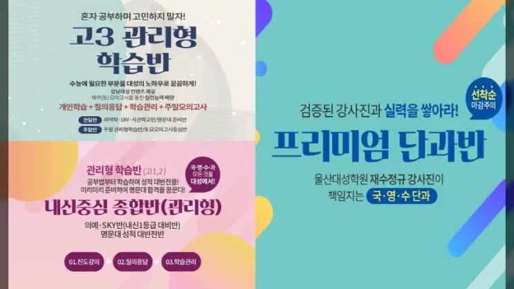 울산 옥동 울산대성학원 고1 고2 고3 관리형 학습반 및 단과 모집 안내