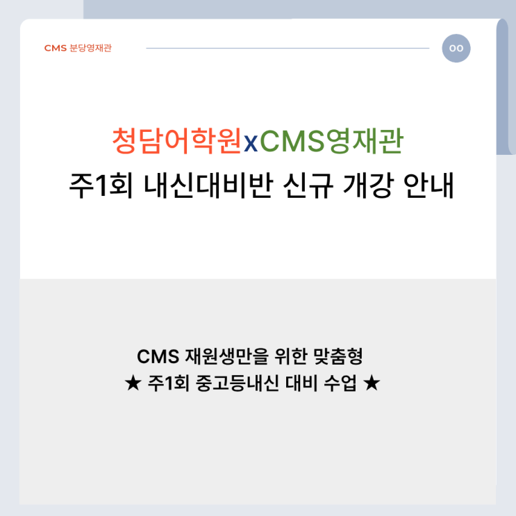 [청담어학원xCMS영재관] 주1회 내신대비반 신규 개강 안내
