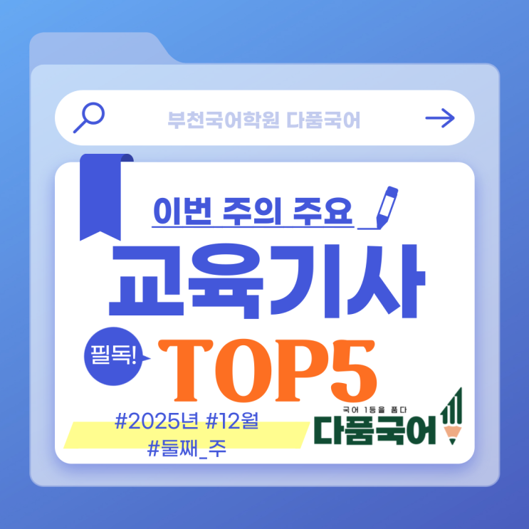 [부천국어학원 다품국어] 25년 12월 둘째주 주요 교육 입시 기사 TOP5 스크랩