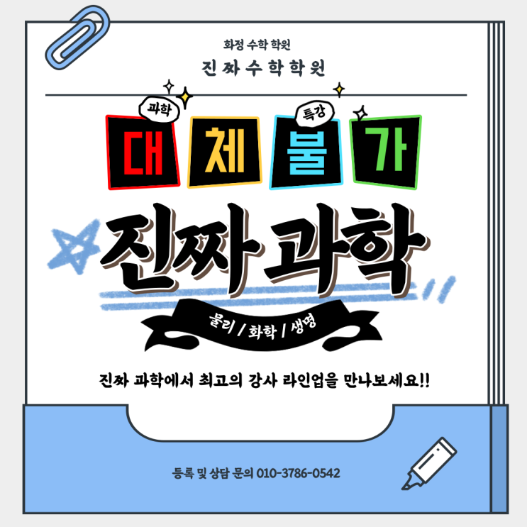 안녕하세요 진짜수학학원 입니다. 오늘은 [진짜과학]에 대해 소개해보려고 하는데요. 고등학교 1학년에서 2학년으로 넘어가는 이 시점이 너무나도 중요합니다. 2학년 공부에 대한 기초적인 틀, 공부에 대한 정확한 방향성을 방학 초부터 확실하게 잡아 놓아야 합니다. 고등학교 2학년 부터는 배우는 과목도 많아짐과 동시에 내용의 깊이, 난이도가 1학년과는 다릅니다. 진짜수학학원 학생들이 고등학교 2학년 내신의 핵심인[과학 과목]을 잘 대비할 수 있도록 저희가 물리, 화학, 생명 과목의 최고의 강사진을 정말 어렵게 모셨습니다. 청솔학원, 강남하이퍼학원, 시대인재 등 주로 대형학원에서 고3, 재수생들을 가르치시는 선생님들 입니다. 최....... <img src="https://blogthumb.pstatic.net/MjAyNjAxMDRfMjE2/MDAxNzY3NDk3MDU1MDk2.K4zMWydqSLiy67Ob0WFUBbPoQrcfNV_G4nN__rGMlPkg.t7rQ8dMPqXwjO5iEsA-aWXCet746iFNXuk-_bN5LnScg.PNG/001.png?type=s3" />