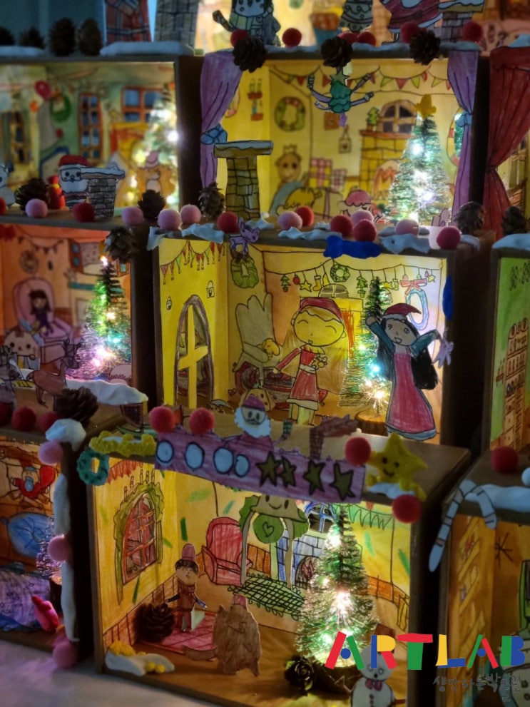 안녕하세요! 생각하는 박물관입니다 이번 포스팅에서는 유초등 랩둥이들의 작품들을 소개해드리려고해요^^ 12월, 랩둥이들은 크리스마스를 맞아서 <크리스마스 방 꾸미기>를 진행해주었는데요! ▼12월의 커리큘럼이 궁금하시다면?▼ https://blog.naver.com/thinkmuseum_artlab/224107583614 어떻게 진행되었을지 궁금하지 않으신가요? 함께 확인해보아요^^ 작업 과정 먼저 종이에 방 안 풍경을 그려주었어요. 자료를 참고해가며 멋진 내부 풍경을 그려주는 랩둥이들! 투시와 원근을 체험해보아요. 완성된 그림에 꼼꼼하게 선을 따 준 후, 다양한 재료로 취향껏 색칠하며 작품을 완성시켜보아요! 완성된 작품에 크리스마스에 어울리는 재료....... <img src="https://blogthumb.pstatic.net/MjAyNjAxMDZfODQg/MDAxNzY3Njk0MDUyODk5.WNVGP5TW5DvdpgRoSc4TFVKxlef2JZ0jyDlzPhEMqJog.PhEoaNpiUUauwxWzCVUWEm3tmOgnWP0FeK-3Cy_7oqkg.JPEG/KakaoTalk_20260106_185153298_03.jpg?type=s3" />