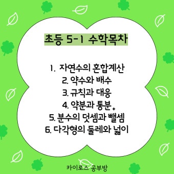 초등 5학년 1학기 수학은 **“연산 중심 → 사고력 중심”**으로 넘어가는 아주 중요한 전환기입니다. 이 시기를 잘 보내면 ✔ 중등수학이 쉬워지고 ✔ 문제 해결력이 눈에 띄게 성장합니다. 단순히 계산만 하는 학년이 아니라 개념을 이해하고 적용하는 힘을 키우는 시기입니다. 초등 5학년 1학기 수학의 중요성 5학년 수학은 앞으로 배우게 될 비례식 함수 개념 도형의 성질 중등 방정식 사고 의 기초가 됩니다. 특히 이 시기에는 ✔ 왜 그런지 설명할 수 있는가 ✔ 개념을 문제에 적용할 수 있는가 ✔ 다양한 방법으로 해결할 수 있는가 가 중요합니다. 즉, 정답보다 과정이 중요해지는 학년 입니다. 단원별 핵심 체크 1️....... <img src="https://blogthumb.pstatic.net/MjAyNjAyMjRfMiAg/MDAxNzcxOTMwNjg5MzQy.nYHGtBp_wg9OI03OLZqnFIb2ffotfAvPkP_ie9os0Fkg.D_rSKmc9ZOtQQ9-JsA0v4l8B9Sf0XPrXQjYMdZ5p-YAg.JPEG/%B4%D9%BF%EE%B7%CE%B5%E5%C6%C4%C0%CF%A3%DF20260224%A3%DF195359.jpg?type=s3" />