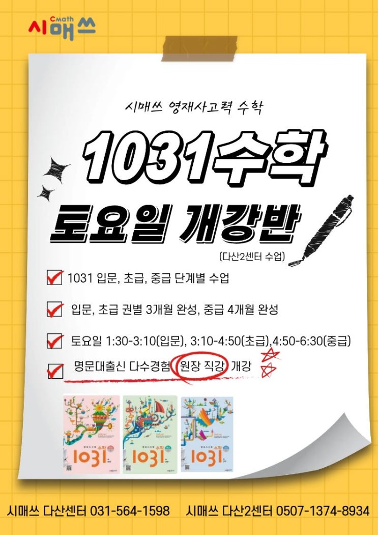 [토요반 시매쓰]영재사고력 1031 입문,초급반 모집