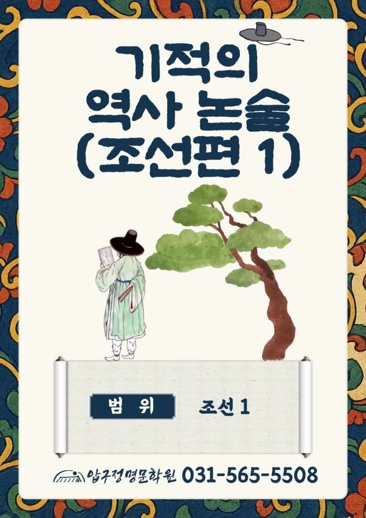안녕하세요. 다산 압구정명문학원입니다. 초등부 한국사 논술 수업을 시작합니다. 이번 과정은 조선 시대부터 근현대까지 역사를 ‘외우는 공부’가 아니라 이야기로 이해하고, 글로 정리하는 수업입니다. 책 읽기 → 핵심 정리 → 생각 쓰기 → 토론 이 흐름으로 진행되는 논술형 역사 수업입니다. ✔ 매주 목요일 오후 2시 (총 8회 특강으로 마무리) ✔ 범위: 조선 → 개항기 → 일제강점기 → 현대사 ✔ 수업 방식: 스토리텔링 + 독서 + 논술 활동 본 특강에 참여하는 모든 학생에게 한국사 논술 특강과 병행하는 한국사 독서집(비문학)을 2권을 무료로 제공해 드립니다. 특강 문의: 010-9054-6804 (문자 혹은 전화) <img src="https://blogthumb.pstatic.net/MjAyNjAyMDRfNzYg/MDAxNzcwMTg2MDcxNjQ3.q_CKOwiHSmuOnD05zz6JPyLscLtkCEJo3aJMKw-i2P4g.1KGVcJuPW_FqswRaBJTN2iSvsmP_hhv4tUBuj0NTlYQg.PNG/1.png?type=s3" />