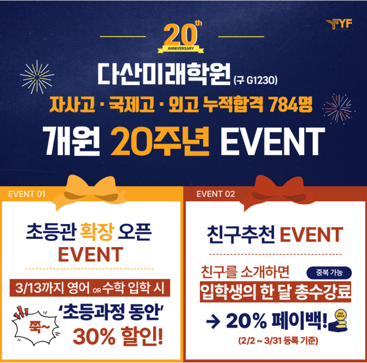 개원 20주년, 다산미래학원 초등관 확장! + 친구추천 이벤트