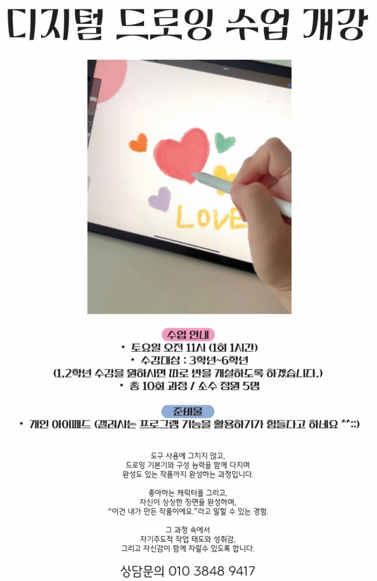 안녕하세요~ '삶에 쉼을 더하는' "하나 아틀리에"입니다. 오늘은 '하나 아틀리에'의 초등 4학년부터 중3까지를 대상으로 한 수업에 관해 설명드리겠습니다. 어떤 학생이 하는 거죠? 이런 학생에게 좋아요! '그림을 제대로 그리고 싶은', '그림의 완성도를 높이고 싶은', '기초를 탄탄히 쌓고 싶은', '취미지만 실력을 향상시키고 싶은', '예중·예고 가능성 열어두고 싶은' 이러한 열정이 있는 친구에게 추천합니다. 어떤 수업이 있나요? 회화 베이직 코어 기초 실기력 + 취미미술 형태, 명암, 관찰 중심의 수업을 진행합니다. 기본적 이론과 원리를 이해하....... <img src="https://blogthumb.pstatic.net/MjAyNjAyMjRfMTgy/MDAxNzcxOTMxNTg0MDk4.7cZxLFADiJlxLDc4OicBzxC4KmKGqracqjnnh_Fpn1kg.TlhTUqXziPvSxVu2T5VQrmn-oE0oTMamsipeAjmtxS0g.JPEG/%C7%CF_%BE%C6_%BC%D2%B0%B3_%B0%F8%BD%C4%BA%ED%B7%CE%B1%D7-002.jpg?type=s3" />