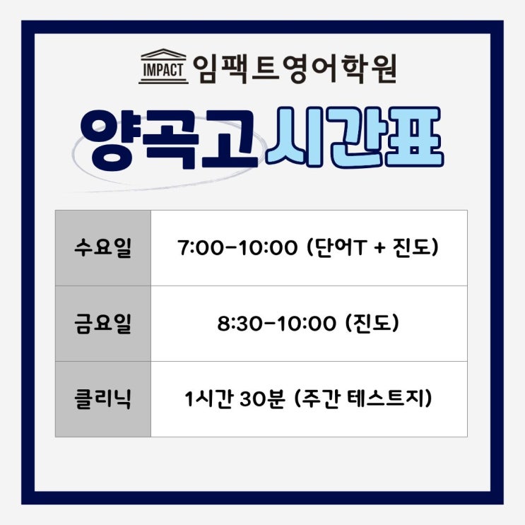 [임팩트 영어학원] 양곡고 학기 중 수업 시간표 변경 안내
