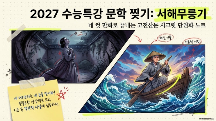 솔터고3 중간고사 시험 범위: 수능특강 서해무릉기 네컷 만화