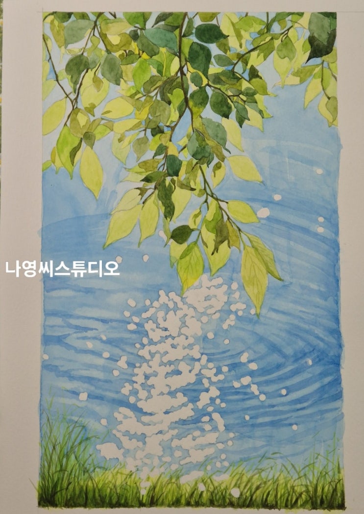 [성인정규반]햇빛 스며든 나뭇잎들이 있는 윤슬이 예쁜 풍경 채색중~✨️ 운양동미술*나영씨스튜디오