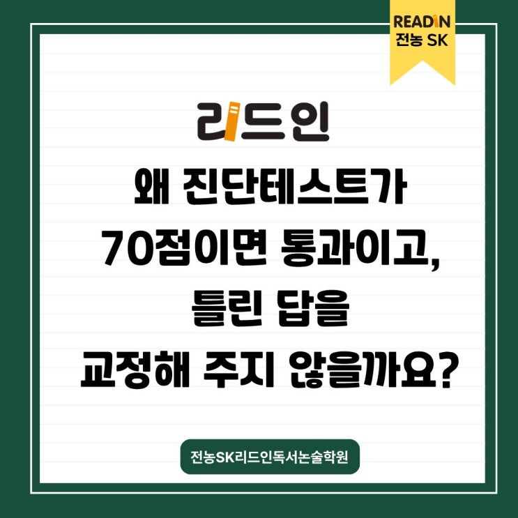 리드인은 테스트 통과점수가 70점이고, 틀린 답을 교정하지 않는 이유 (동대문구 독서 논술)