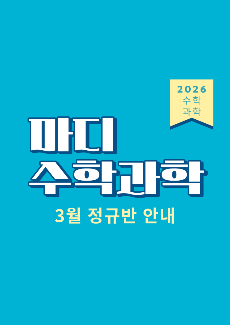마디 수학·과학 3월 정규반 오픈 안내 안녕하세요, 마디학원입니다. 3월은 한 학기의 흐름이 결정되는 중요한 시기입니다. 특히 중간고사 이전의 학습 밀도가 이후 성적을 좌우하는 만큼, 마디학원에서는 3월 내신대비 수학·과학 정규반을 철저히 준비하여 오픈합니다. 3월은 단순히 ‘학기가 시작하는 달’이 아닙니다. 실제로는 학교별 출제 방향 학생 개인별 개념 공백 문제를 대하는 사고 습관 이 모두가 드러나는 시기입니다. 이 시기를 놓치면 → 시험 직전에 양만 늘어나는 공부 → 이해 없이 외우는 풀이 → 성적은 불안정 의 과정을 겪을 수밖에 없습니다. 그래서 마디는 3월을 ‘정리의 달’이 아니라 ‘기준을 세우는 달’로 봅니다. ....... <img src="https://blogthumb.pstatic.net/MjAyNjAyMDlfMTU1/MDAxNzcwNjM1NDAyODE3.QNIYxnPPO5uyhAqt_Od5tmUX_Afji2oizLpPwqnj-xog.4C6FG2qxtdjbTV1s6orXkVHEuzzm4_p9DBLJvO-hpOkg.PNG/%C1%A6%B8%F1%C0%BB_%C0%D4%B7%C2%C7%D8%C1%D6%BC%BC%BF%E4._%288%29.png?type=s3" />