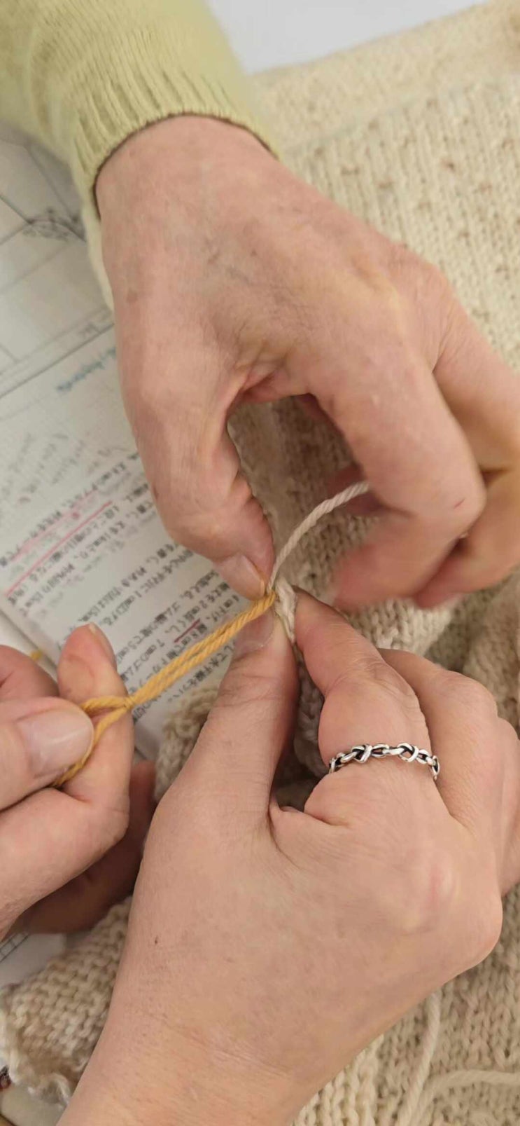 세로잇기할때 돗바늘 실이 부족할때 이렇게 해 보세요. 사용하는 실이 10cm정도 남을때 아래와 같이 새 실을 고리를 내어 남아있는 실을 넣고 새실을 잡아 당기면 됩니다. 세로잇기시 실을 길게 자르실 필요없이 이렇게 잇는게 오늘 해 보신 분들 신의 한수라고… 필요 하실때 해 보세요. <img src="https://phinf.pstatic.net/image.nmv/blog_2026_01_30_582/HcVuU5SR7U_03.jpg?type=f480x480" />