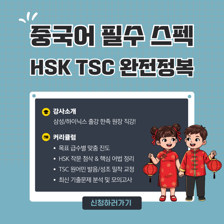 청주 율량동 중국어 학원, HSK TSC 자격증 한족 원장 직강으로 한 번에 끝내기!