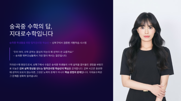 "우리 아이, 수학 공부는 열심히 하는데 왜 성적이 안 오를까요?" 숭곡중 학부모님들께서 가장 많이 하시는 질문입니다. 지대로수학 원장으로서 성북구에서 개별학습 시스템을 통해 수많은 숭곡중 학생들의 수학 실력을 끌어올린 경험을 바탕으로, 오늘은 진짜 실력 향상을 만드는 밀착관리형 학습반의 핵심을 공개하겠습니다. 숭곡중 수학, 왜 밀착관리가 답일까요? 숭곡중 수학 시험은 기본 개념과 응용력을 동시에 요구합니다. 단순 문제풀이 반복으로는 한계가 분명합니다. 지난 3년간 우리 학원 숭곡중 학생들의 데이터를 분석한 결과, 성적 향상의 핵심은 개별 약점을 정확히 진단하고 체계적으로 보완하는 것이었습니다. 실제로....... <img src="https://blogthumb.pstatic.net/MjAyNjAyMjFfMTg0/MDAxNzcxNjQwNDQ4NDc3.8Pi51psOQcQJO4uwXiPJsbcR8-JYFuDr-wPnA_O0Ajog.izK84-qwLmZjpj4k2TWfFovTulITZdw2_WY5jTy2hAsg.PNG/900%A3%DF1771640441671.png?type=s3" />