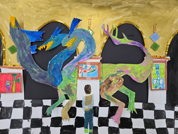 안녕하세요~ 피카소가 반한 아이 미술학원입니다. 오늘은 우리 6세 작가님들의 작품을 소개 해 드릴까해요~!! 우리 작가님들은 갤러리라는 공간을 배워보면서 상상력을 조금 더 덧붙여보았는데요 박물관이 살아있다 처럼 우리의 미술관 속 그림이 살아 움직인다면 어떨까요? 우리 작가님들의 재미난 상상력을 보여드릴게요 먼저 완성작 부터 보여드릴게요~ 어떤가요? ㅎㅎ 너무 귀엽죠~? 그럼 작가님들의 과정도 빼놓을 순 없겠죠? 우리 작가님은 용을 정말 좋아해요~ 워낙 큼직 큼직하고 시원하게 잘 그리는 작가님이라 그런지 망설임이 없어요^^ 채색도 빠질 수 없죠 ㅎㅎ 우리 작가님은 글루건도 직접 쏴보면서 열정적으로 꾸며주었어요 이렇....... <img src="https://blogthumb.pstatic.net/MjAyNjAyMTBfMjU3/MDAxNzcwNzExMTc2MDQy.qHMvSqbcyPXNFSQw1jZI6SEbNETj5KqXHO31tvpMobMg.dPCUlzDU0kCstXGU3m4SH473ciD1wDI_ESRMHuZjm9Mg.JPEG/KakaoTalk_20260205_184706317_06.jpg?type=s3" />