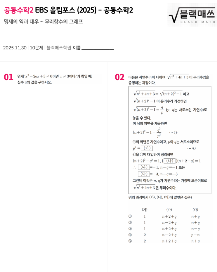 고등 수학에서 상위권을 유지하는 학생들의 공통점은 분명합니다. 선행과 현행을 동시에 놓치지 않는 구조적인 학습을 하고 있다는 점입니다. 메리트수학에서는 이러한 흐름에 맞춰 이덕호 선생님과 함께하는 최상위반 2H1반을 개강합니다. 왜 지금 ‘최상위반’이 필요한가 최근 교육과정 변화로 인해 고등 수학은 단순한 공식 암기가 아닌, 개념 간 연결·대수적 사고력·문제 해석력이 성적을 좌우하고 있습니다. 특히 공통수학 1·2 과정은 ✔ 고1 내신 ✔ 고2·고3 수능 수학 ✔ 모의고사 고난도 문항 까지 모두 직결되는 핵심 구간입니다. 이 구간을 얼마나 깊이 있고 정확하게 다지느냐에 따라 고등 수학의 난이도 체감이 완전히 달라집....... <img src="https://blogthumb.pstatic.net/MjAyNTEyMTdfMjI3/MDAxNzY1OTY4ODU0NDgy.96u6V057d8B1Qub1BIRXLyicFsNIvxIlu2yryWnlnM4g.ZEYIjLdks2UPsUA0_hulhzS08PgfRr13-ype29-uiu4g.PNG/%BD%BA%C5%A9%B8%B0%BC%A6_2025-07-16_170632.png?type=s3" />