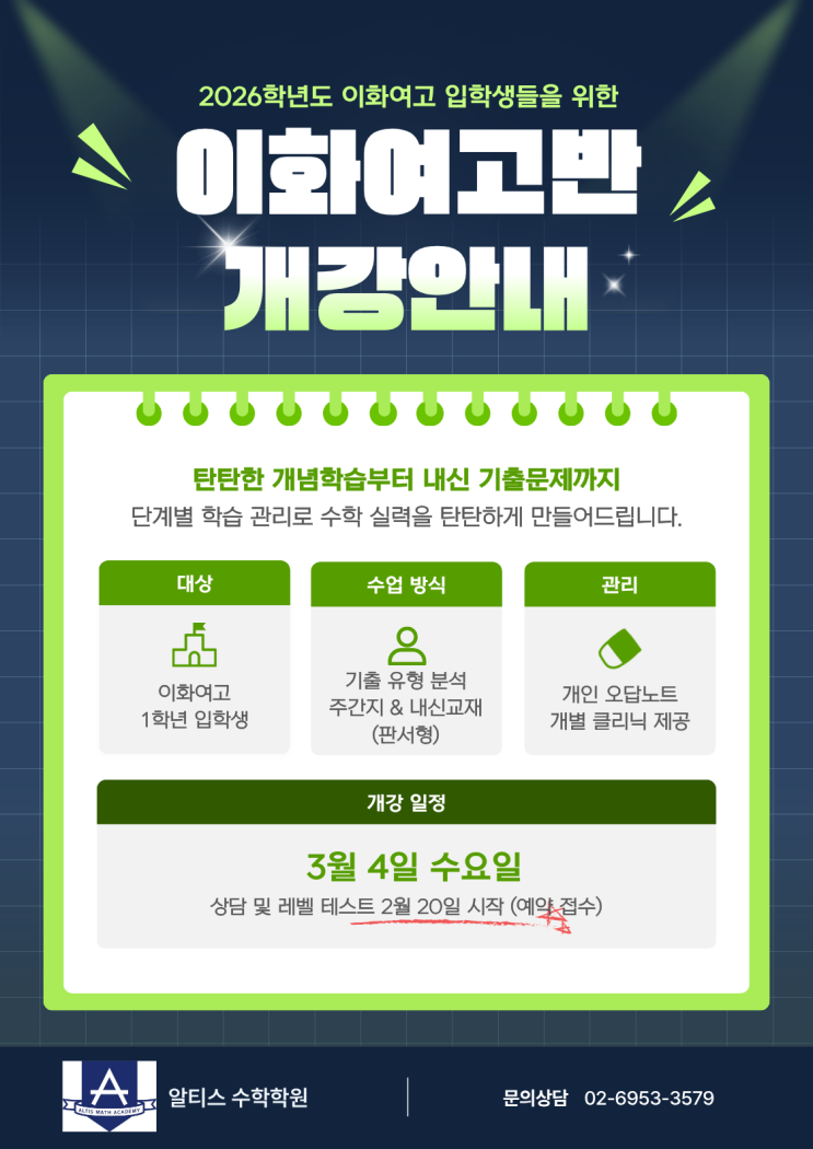 2026년도 이화여고 수학 1학년 내신대비반 개강안내 [신촌 알티스수학학원]