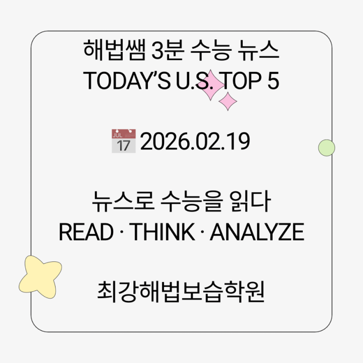 2026년 2월 19일 미국 5대 뉴스 해법쌤 3분 수능 뉴스