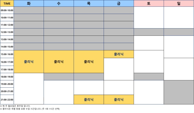 안녕하세요 2026년도 수업이 12월 26일부터 순차적으로 시작됩니다. 시간표가 개편됨에 따라 클리닉 시간표도 12/26부터 변동됩니다. 과학 과목 특성 상 주말 수업 수요가 많아 주말에는 정규 수업 위주로 배치를 하였으며 주말에는 별도의 클리닉 시간은 운영하지 않습니다. 참고 부탁드립니다. 클리닉은 1시간 가량 진행되며 백지test 및 숙제 검사 ,질의응답 등이 이루어집니다. 감사합니다. <img src="https://blogthumb.pstatic.net/MjAyNTEyMTFfMTM0/MDAxNzY1NDYyOTA5MTkz.mJM4zDICE1F7jblnbejEQcu2mwG8xVg25wtcWYzPyCog.jBqPK1LJ2ZHzXAHEwYydRmrsx26s7_orNtYwJhZnSJ8g.JPEG/2026_%B0%DC%BF%EF_%C5%AC%B8%AE%B4%D0.jpg?type=s3" />