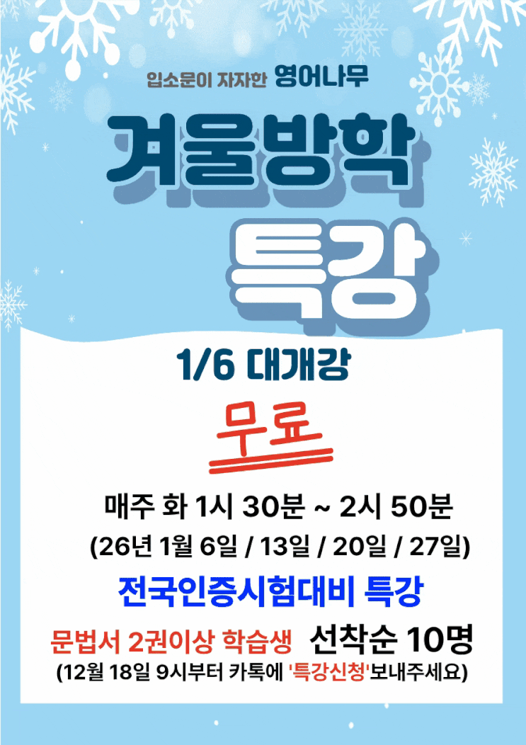 입소문이 자자한 영어나무 겨울방학 무료특강