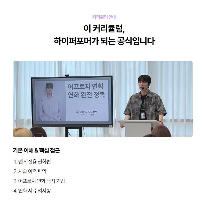 "복구매직은 약만 좋으면 된다?" 아직도 그렇게 생각하고 계시다면 고객 클레임과 재방문율에서 이미 차이가 나고 있을지도 모릅니다! 연화 이해 -> 실전 적용 -> 완성 전략 -> 매출 연결 까지 이어지는 구조의 비주얼아카데미 어프로치 연화교육 주목해주세요! 1.기본 이해 & 핵심 접근 복구 매직의 시작은 '연화 이해' 입니다 ✔️맨즈 전용 연화법 ✔️시술 이력 파악 방법 ✔️어프로치 연화 터치 기법 ✔️연화 시 주의사항 복구매직 실패의 대부분은 연화 판단 미스에서 시작됩니다 겉으로 멀쩡해 보이는 모발도 열 이력, 탈색 이력, 블랙 염색 이력에 따라 반응 속도와 탄력 복원력이 전혀 다르죠! 이 교....... <img src="https://blogthumb.pstatic.net/MjAyNjAyMjVfMjc2/MDAxNzcxOTc5OTMxODgx.yBsScOmEmjDWo8SV7jnFi89Dsk85nzfI6SVQL4Ylfdkg.CTmcu30r8OPxlGapDQdEKut3h6BrM4i9Op2px8-jGd0g.JPEG/%BD%BA%C5%A9%B8%B0%BC%A6_25-2-2026_93026_www.visualacademy.co.kr.jpeg?type=s3" />