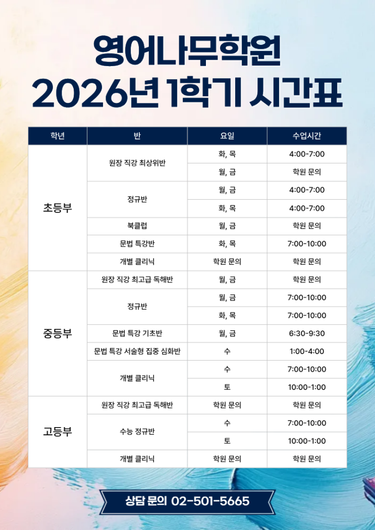 [대치동 영어학원 2026 1학기 신학기 모집] 초등 어학·중등 내신·고등 수능 대비반 안내