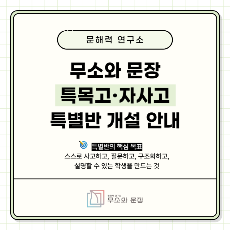 [위례 독서논술학원] 문해력 연구소, 무소와 문장 특목고·자사고 특별반 개설 안내