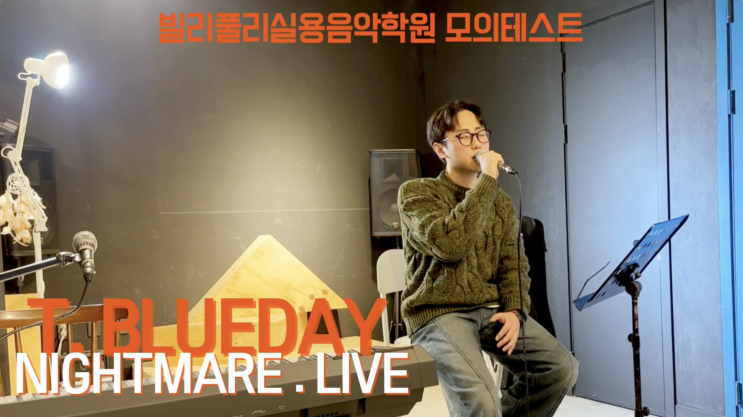 BlueDay - Nightmare OST Live 공연 - 빌리풀리 모의테스트 x 특강 빌리풀리의 실기 대비 모의테스트는 학생의 무대 점검 및 도움이 되는 선생님의 피드백 뿐만 아니라 멋진 아티스트의 무대 공연 까지 이어지는데요 싱어송라이터 BlueDay - Nightmare Live 공연입니다 ! 음원으로 들었을 때보다 신비로운 보컬톤과 현장감 있는 다이나믹이 더 잘 느껴져서 정말 멋있는 무대였어요 <img src="https://blogthumb.pstatic.net/MjAyNjAzMTVfMzgg/MDAxNzczNTYxNzc3NTg0.4xonEowfLWdDYqyqPOhvtZ89lXH9fPfKxML6CSBHVfog.B9Vwu6RggbTlcTbpRckPj6rFcBrjdsBAhZK0XmFWe8sg.PNG/%3F%8A%A4%3F%81%AC%EB%A6%B0%EC%83%B7_2026-03-15_%3F%98%A4%3F%9B%84_4.55.16.png?type=s3" />